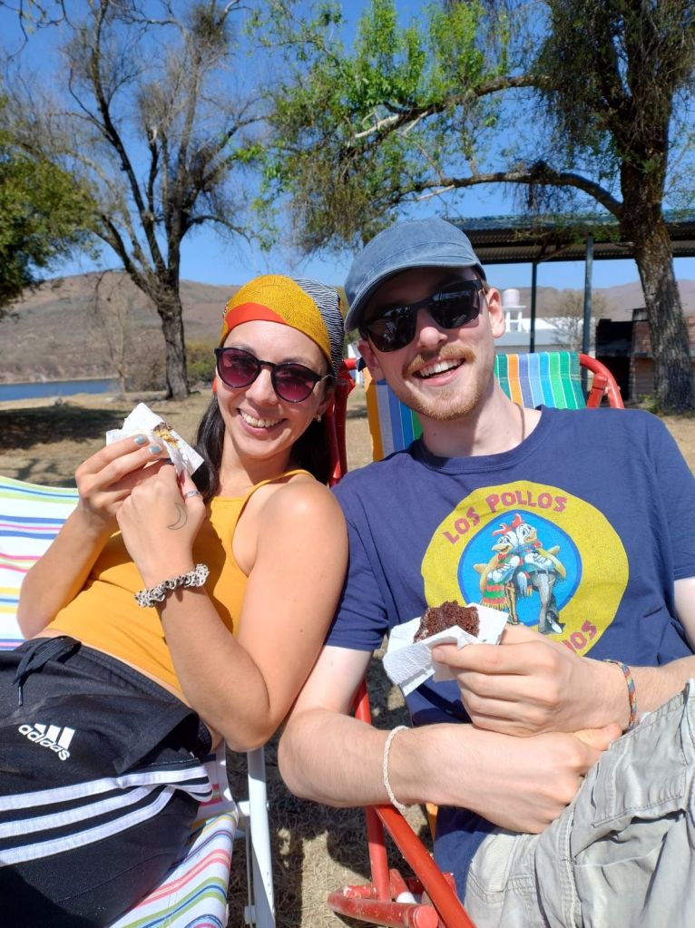 Mientras esperábamos el equipaje, mis sobrinos y mi hermana nos miraban entusiasmados por abrazarnos y darnos la bienvenida. Fue tremendamente dulce cómo los pequeños nos recibieron, directamente abrazándonos y dándonos la bienvenida a tierras salteñas. Ver a mis hermanas luego de un año y medio sin vernos, abrazarlas y poder volver a pasar tiempo con ellas y los «Titis» (el nombre grupal que usamos para mis sobrinos) se sintió muy acogedor. Aquí, a continuación, un emocionante video de nuestra llegada.