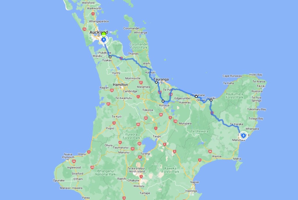 Auckland, Tauranga, Rotorua, Whakatane, Gisborne…