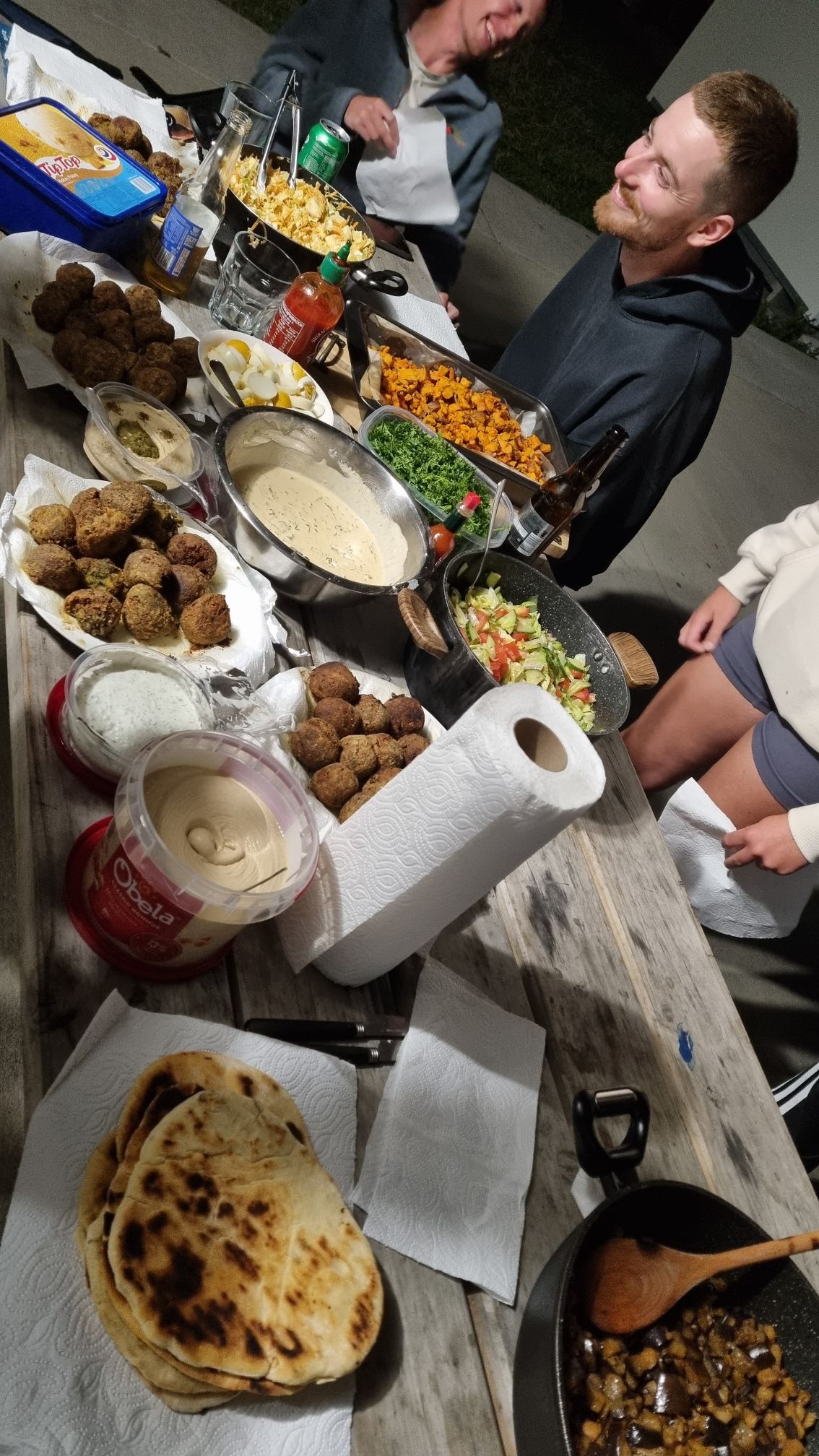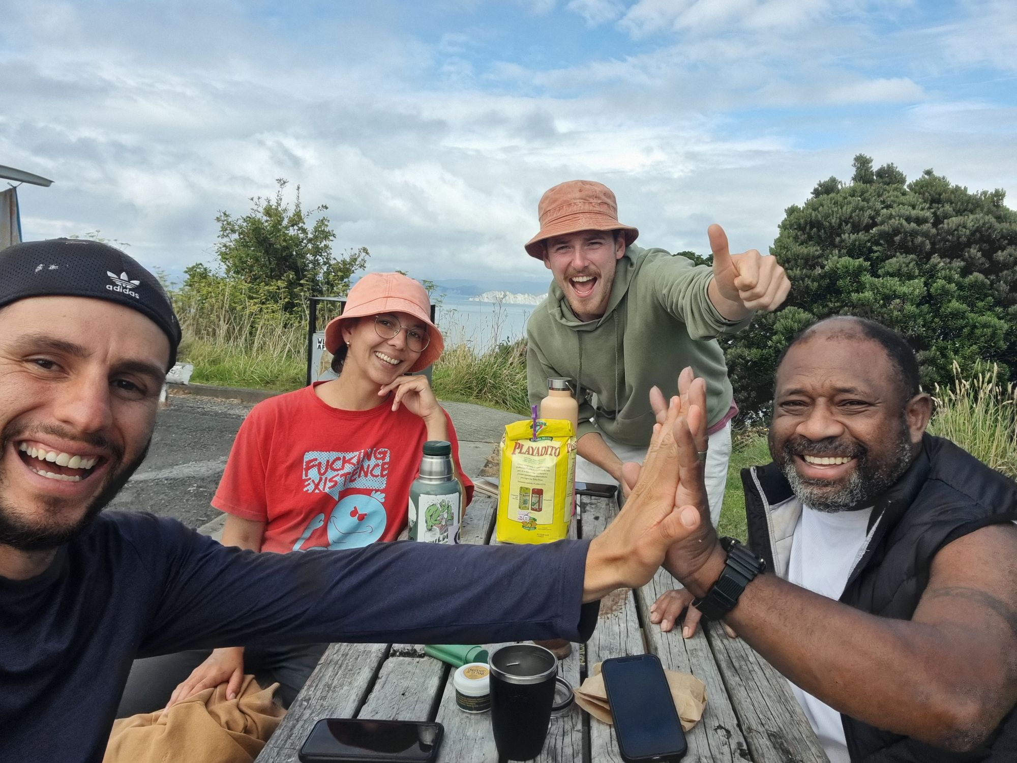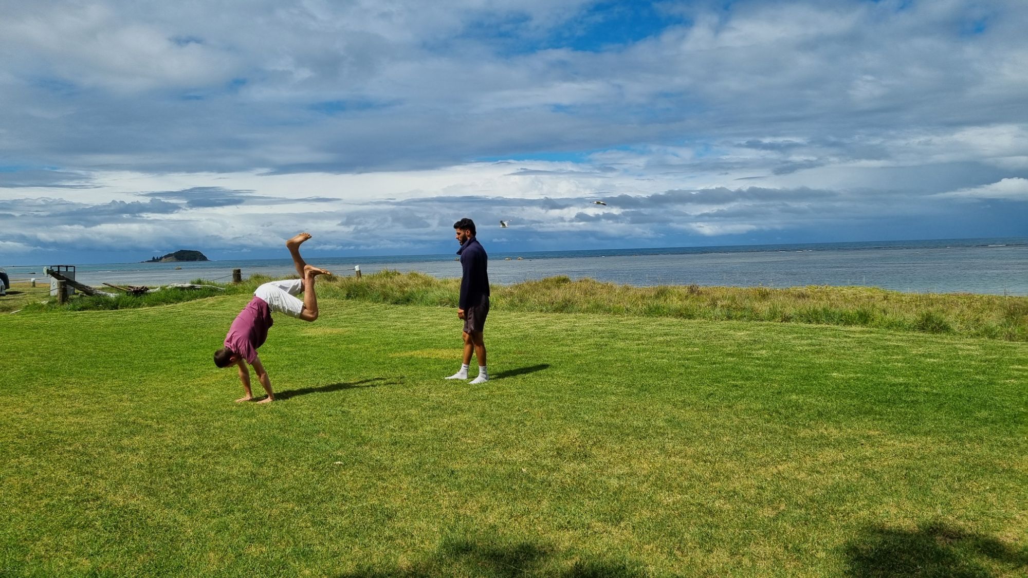 Viele unserer Nachmittage verbrachten wir mit Freunden. Entweder mit Tommi, Caros Freund aus Argentinien, mit dem wir uns zum Acro Yoga üben oder gemeinsamen Kochen trafen. Oder mit unseren Freunden von der Apfelplantage. Nach unserer Rückkehr nach Gisborne freundeten wir uns schnell mit den neuen Bewohnern unseres ehemaligen Hauses an. Regelmäßig wurden wir zu Partys jeglicher Art in das Landhaus eingeladen. Mal wurde gekocht, mal Karten gespielt, mal getanzt. Dabei sorgte neue französische Dominanz and Bewohnern stetig dafür, dass ihre Kultur in Form von Crepes weiter gegeben wurde.