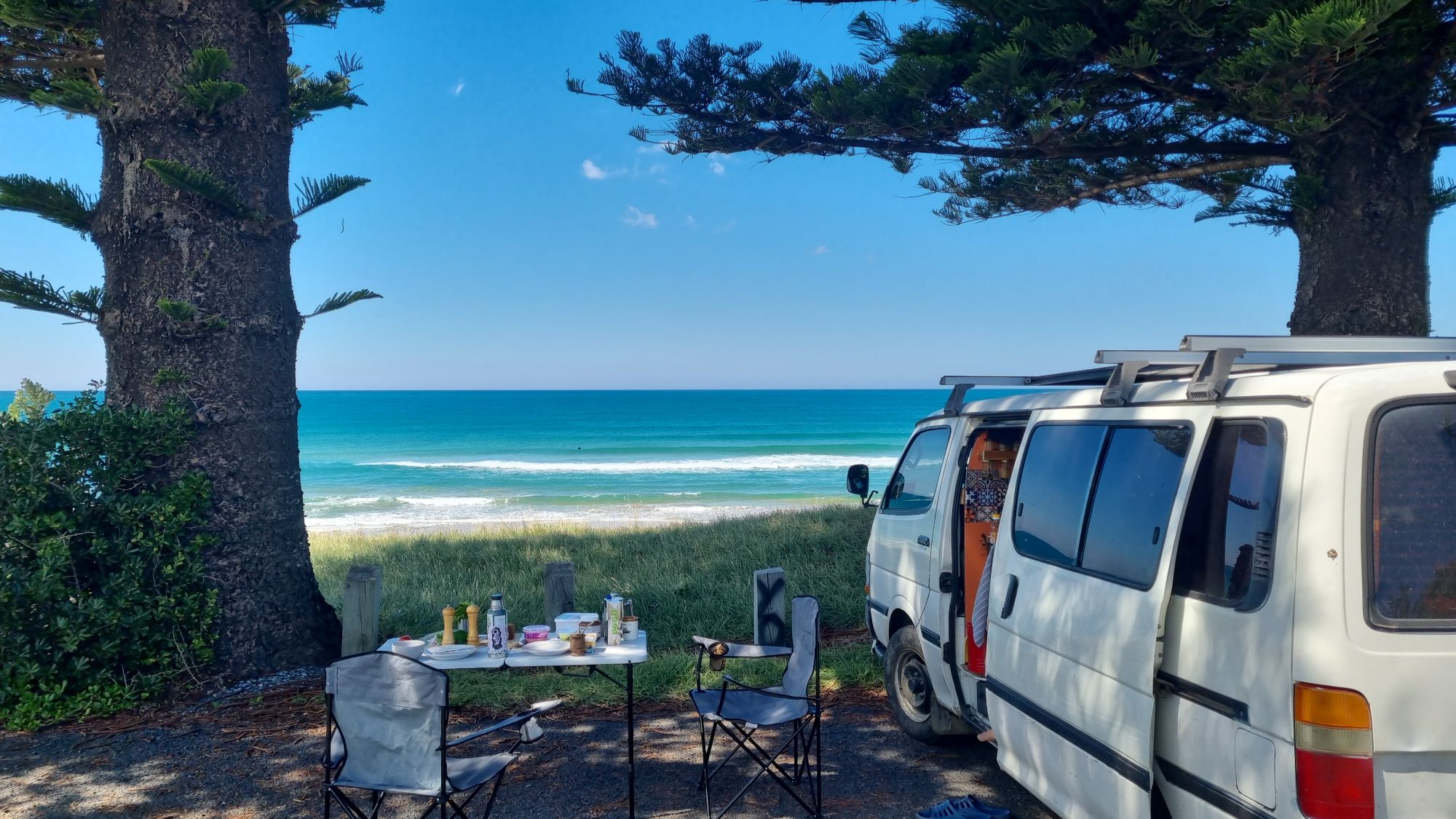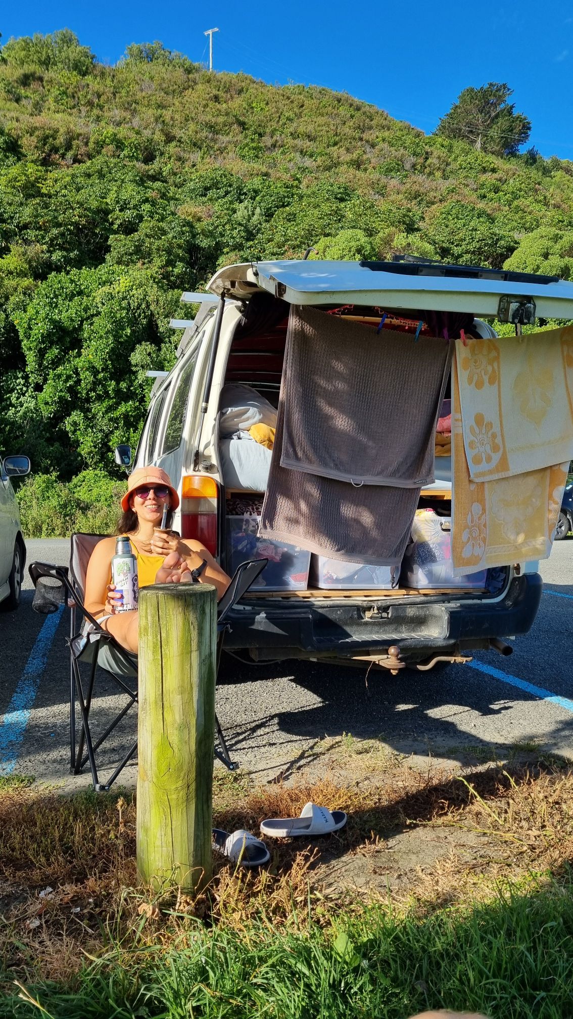 Wir verließen die Farm und machten wir uns vorsichtig auf in Norden. Ziel die nahe liegende Küstenstadt, Napier. Der Unfall war ja noch keine Woche her, so fuhren wir behutsam über die Kieselstraßen des Farmlandes. Immer mit gespitztem Ohr, um den Motorgeräuschen zu lauschen. In der Hoffnung nichts auffälliges zu hören. Glücklicherweise fuhr Dobby einwandfrei. Ohne Muckser schafften wir es nach Napier zu einem schönen, kleinen Freedom Campingplatz außerhalb der Stadt neben einem Spielplatz.