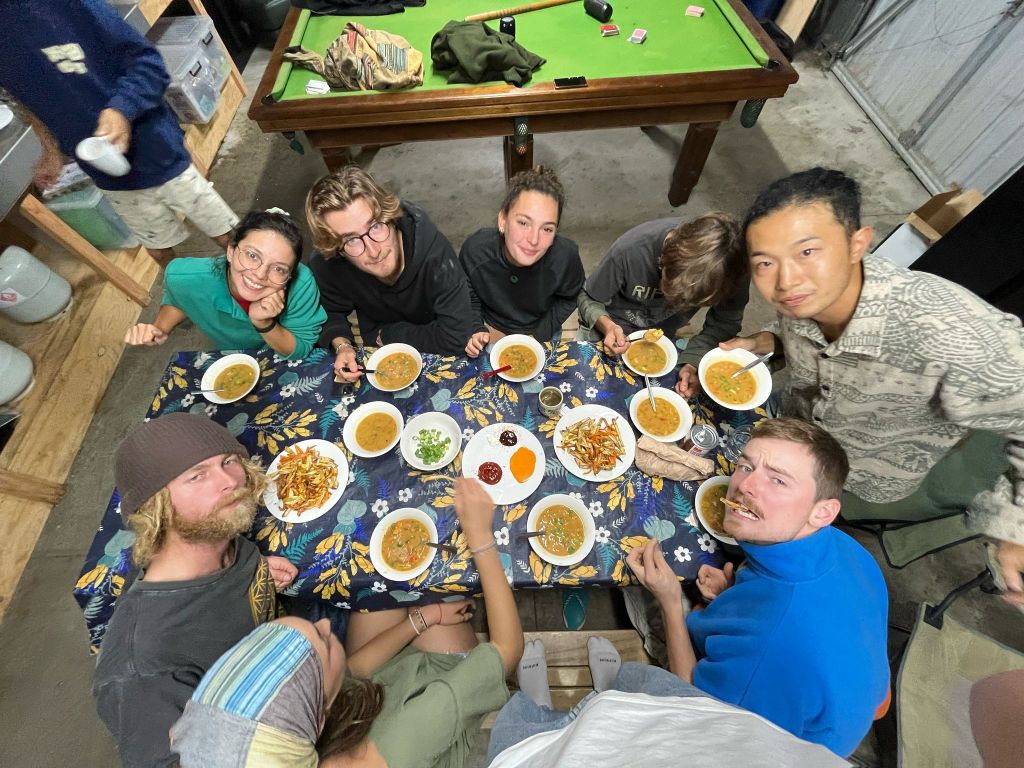 Noches, comidas exquisitas, jugar cartas, pasar frio juntos y muchas muchas risas.. Gente hermosa que tenemos en nuestro corazon.