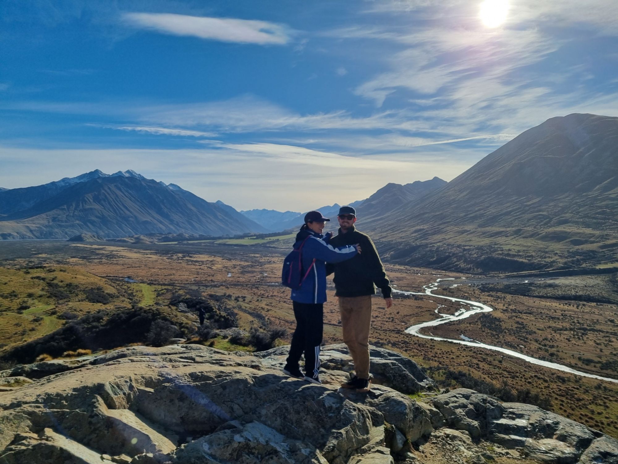Justo en esa llamada estabamos haciendo una caminata muy hermosa entre las montañas. Festejar en la cuspide de un cerro con una vista increible, que ya teniamos una cama caliente y un techo en nuestros hombros fue epico.
