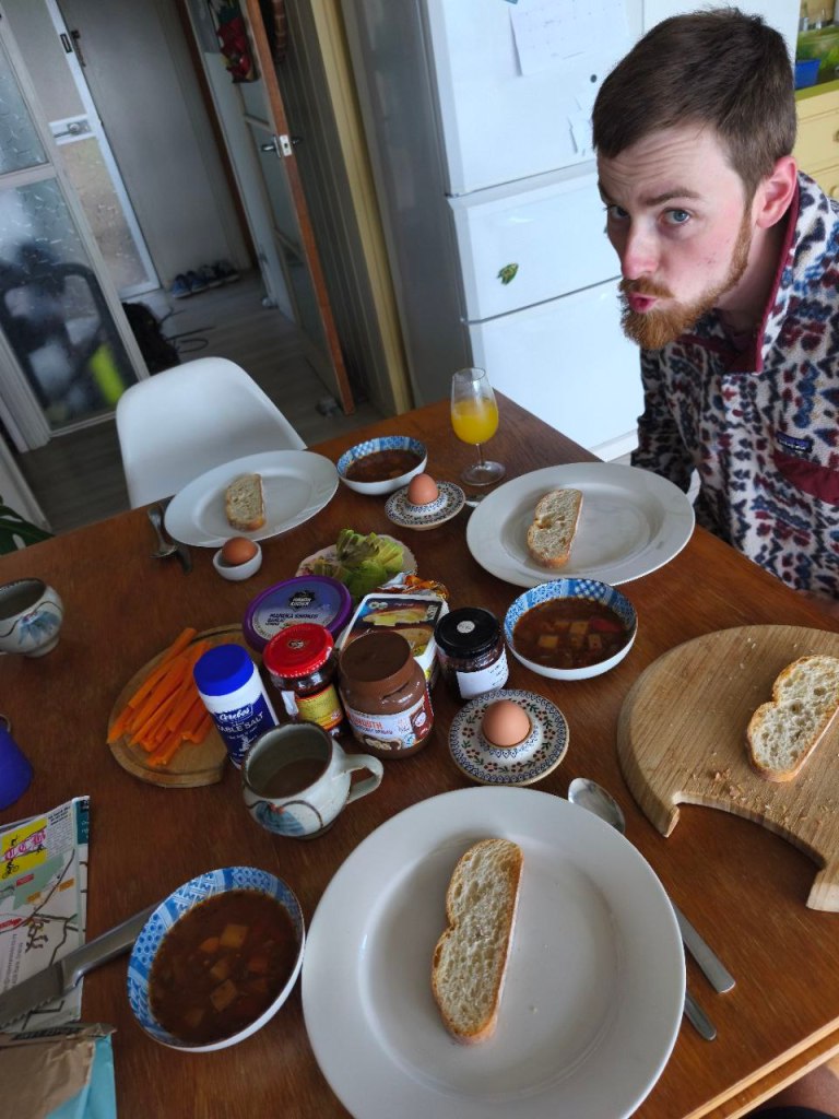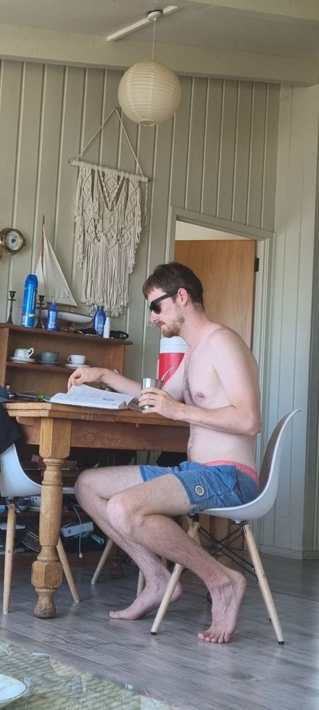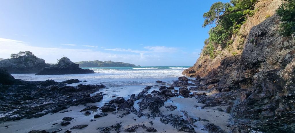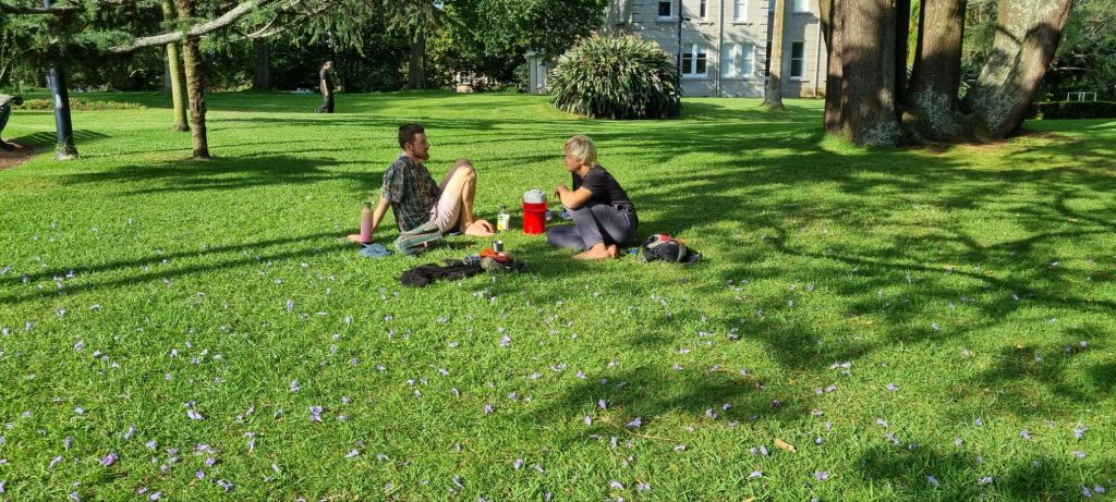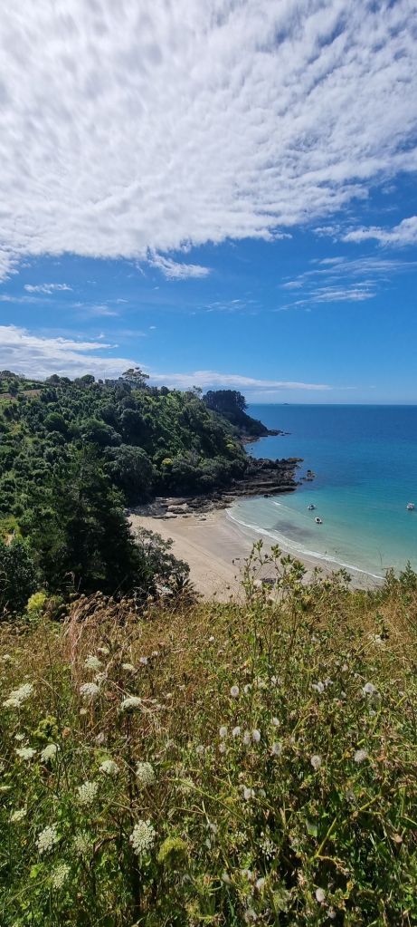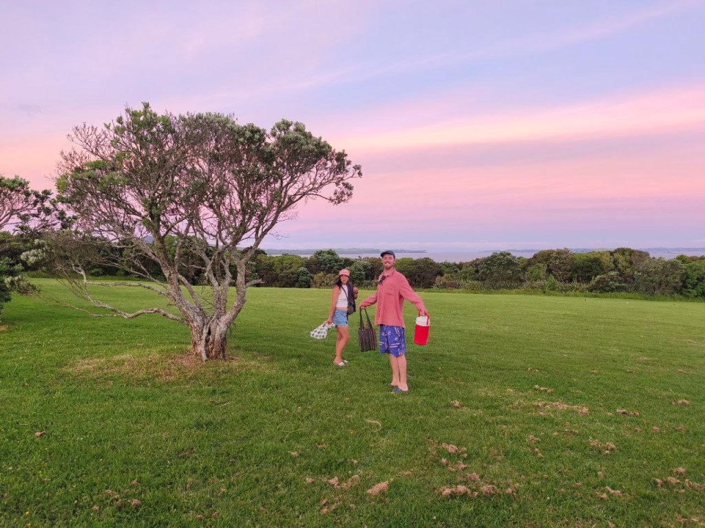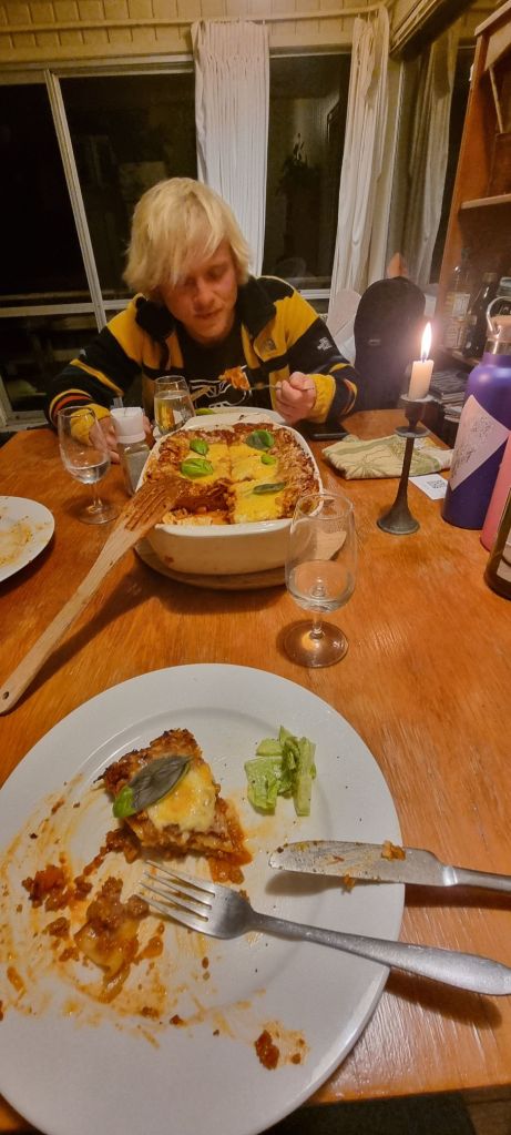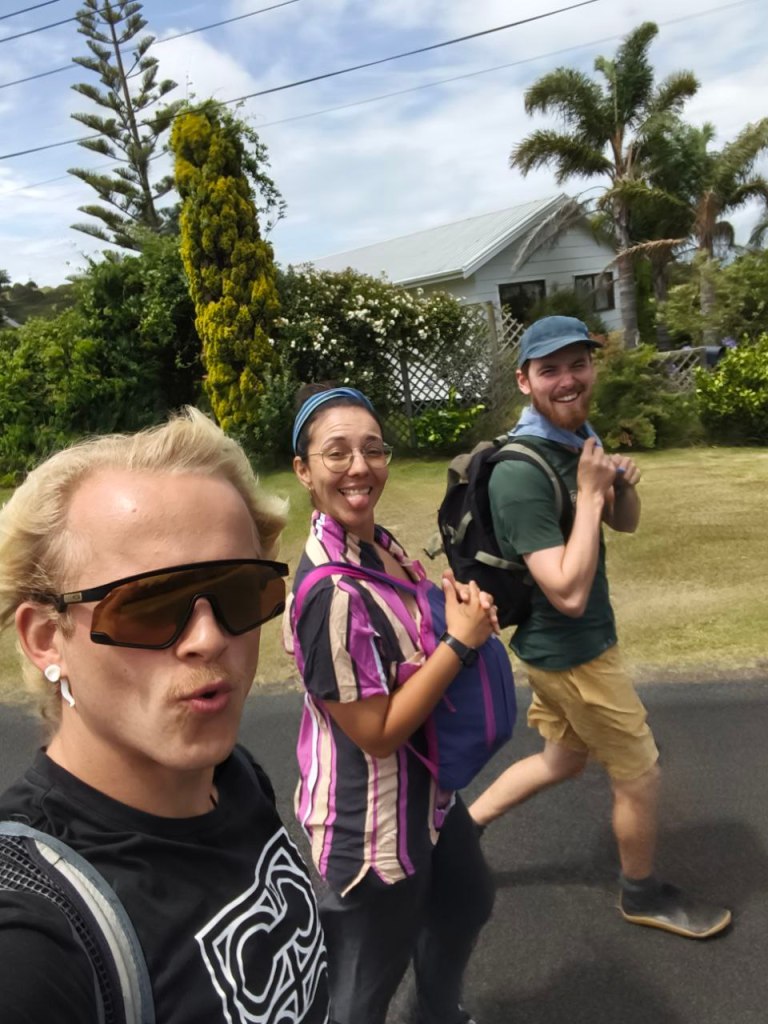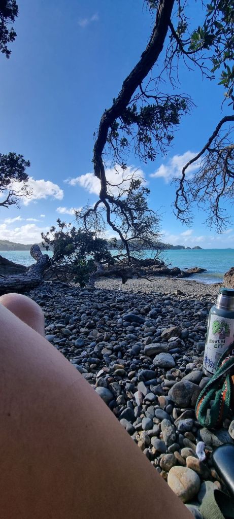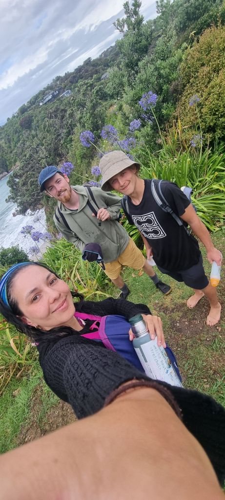 Me tocó vivir mi cumple en Waiheke, donde salimos a caminar con los chicos con un vinito para brindar. Nos agarró una tremenda tormenta en medio de la caminatita. Terminamos todos mojados, pero de repente la lluvia nos regaló un respiro y nos fuimos directo a saltar al mar. Jugamos como niños con las olas hasta que ya no pudimos más. Volvimos a casa; Leon y Chris cocinarón una lasagna vegetariana deliciosa. Improvisé un postre con dulce de leche y avena mientras brindábamos con un vinito. Fue un día muy especial, con aventura, con mar, comida rica y gente amada. Muy agradecida.