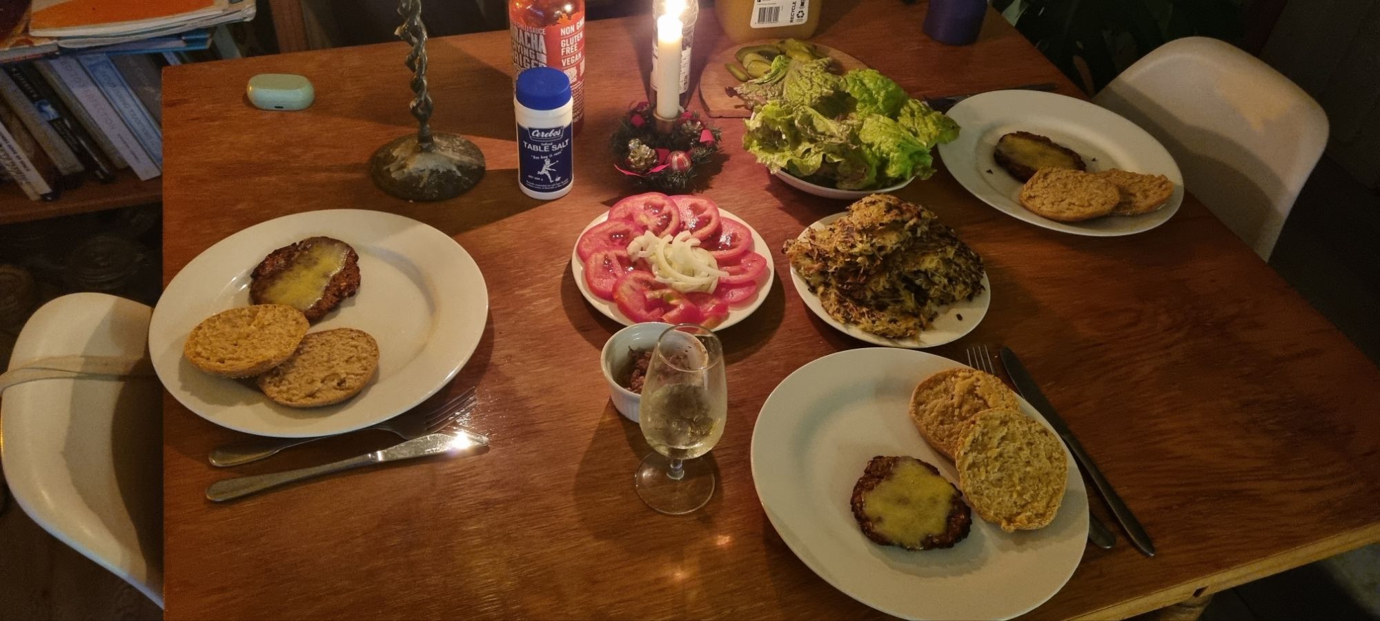 Navidad y Año Nuevo festejamos con comidita rica y charlas al balcón. Con Leon estábamos trabajando 14 horas al día en ese tiempo, llegando a casa muy, muy tarde, pero Chris nos esperaba para compartir. Para Navidad Leon hizo unas burgers veganas y Chris preparó unos ricos panes caseros! Con ensalada del jardin de la dueña de la casa, exquisito. En Año nuevo con Leon trabajamos hasta las 1am, comimos en el restaurante luego que cerró junto a la familia dueña. En la vuelta a casa del trabajo, caminamos en una hermosa noche. Habiamos prometido hacer un chapuzón bajo la luna para recibir el año. Luego de 15 hs de trabajo muy duro que tuvimos, meterse al mar, desnudos bajo la luz de la luna fue increible. Refrescarnos y celebrar para llegar a casa, donde Chris ya dormía, nos sentamos con Leon en el balcón en el fresco de la noche, con pies adoloridos, para charlar sobre el dia que tuvimos (seguíamos con la adrenalina de haber trabajado sin parar) a pesar de todo tuvo su encanto recibir el año asi.