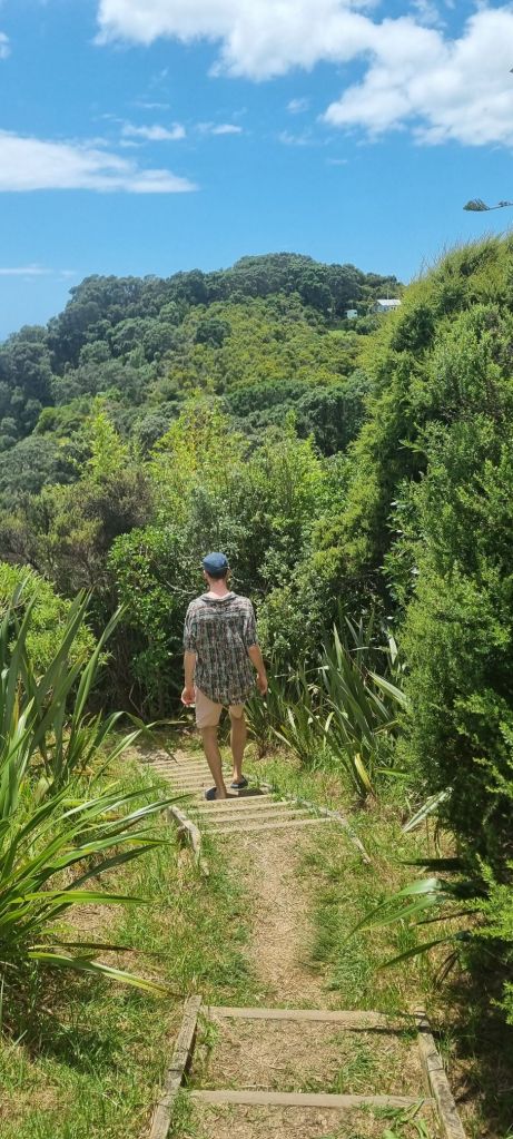 Nos tocó despedir a Chris de la isla, él partia a su aventura por NZ y a nosotros nos tocaba mudarnos a un hostel ecológico muy lindo, construido hace 30 años por una persona local. El plantó una selva con muchos arboles de frutas y vegetales. Como en todas las casas de la isla, el agua venia del techo, recojido de la lluvia. Íbamos a vivir ahí las últimas dos semanas en Nueva Zelanda, trabajando a full pero también disfrutando las playas paradisíacas después de trabajar. Leon se hizo amigo de los otros huespedes del hostel y salía con ellos a veces.