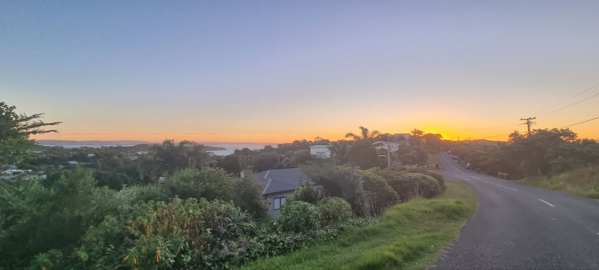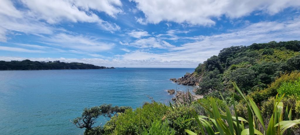Decidimos ir a vivir nuestros últimos dos meses en Nueva Zelanda allí. Encontramos para alquilar (con mucha suerte) una casa con vista al mar por cinco semanas junto con Chris. Aqui la vista de nuestro balcón, soñado:
