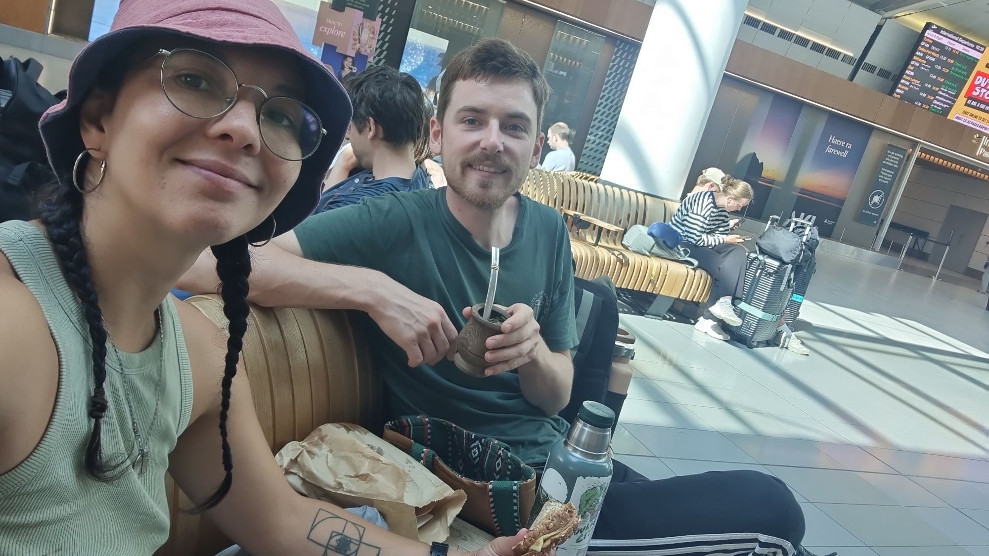 Últimas fotos en suelo neozelándes, no sin antes haber pasado por un buen Pie shop en Auckland, donde desayunamos con mate en el aeropuerto.