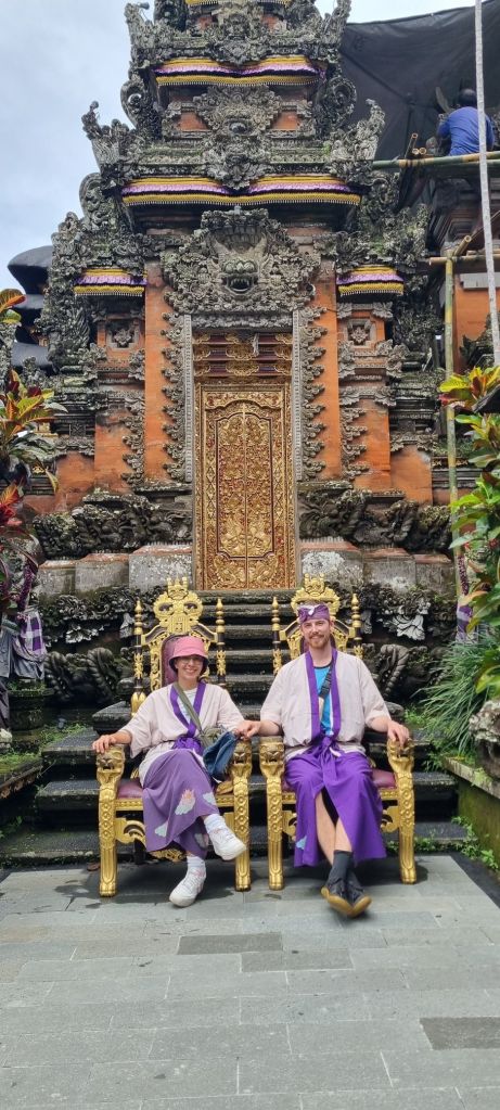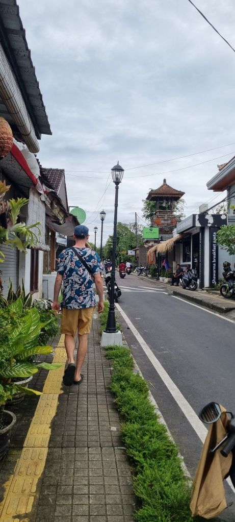Llegó la hora de dejar Sanur y partimos rumbo a Ubud, más al centro-oeste de Bali. Aquí ya sentimos el choque cultural un poco más fuerte. Éramos notoriamente turistas, junto con muchos otros. Estábamos abrumados por los vendedores, las calles estrechas y las casas voluptuosas y tradicionales, en medio de un tráfico ruidoso y caótico. Lo que impactó de Ubud es que es un lugar muy pintoresco, algo que está muy explotado allí. Está rodeado de templos y las famosas «homestays», que son casas de familia donde tienen habitaciones para rentar a turistas.