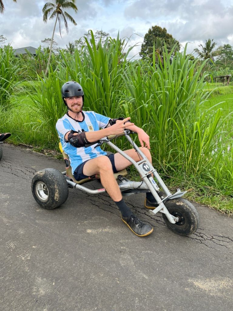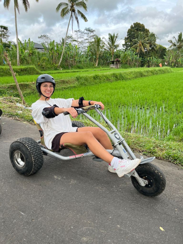 En Ubud, caminamos por los tradicionales arrozales. También hicimos una excursión de «Jungle cart» donde nos llevaron a masomenos una hora y medio hacia el centro de Bali para tirarnos cuesta abajo con unos cartings.