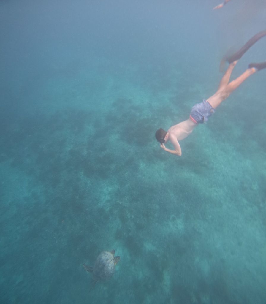 Nos metimos al mar con pececitos muy lindos y tortugotas. Fue un día increíble. Cruzamos con el bote a otras dos islas y parábamos a hacer snorkel.